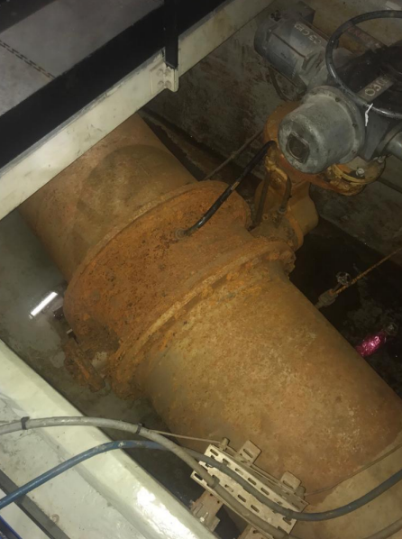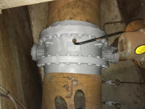 Application du système Belzona 3412, membrane d’encapsulage des brides, étanche, souple et pelable. Traitement de la totalité des brides et piquages du robinet avec ces annexes : réducteur, raccords unions, petits robinets connectés à la tuyauterie principale.