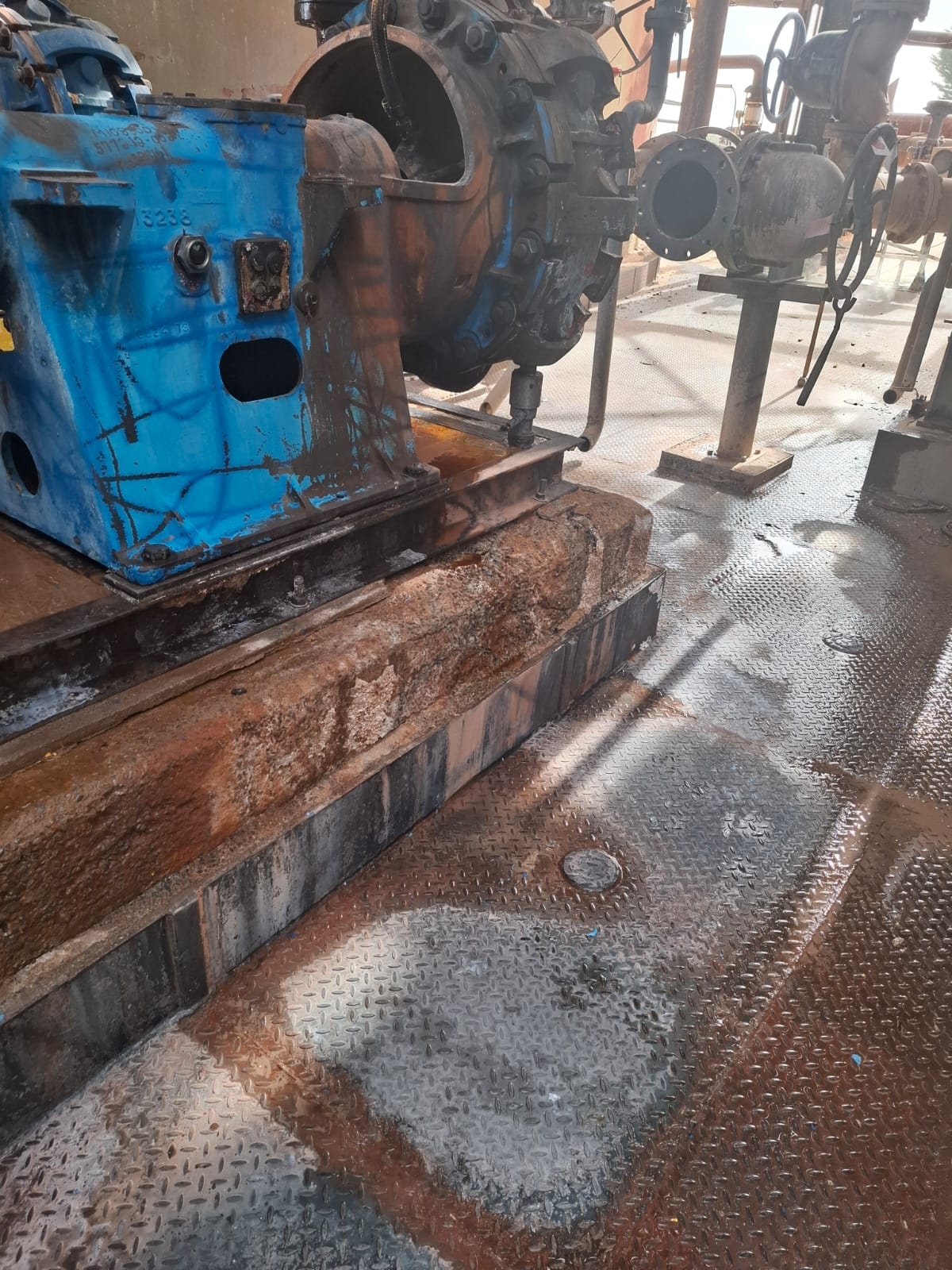 Situation d’application : Le socle s’était détérioré en raison du contact constant avec de la soude caustique chaude.