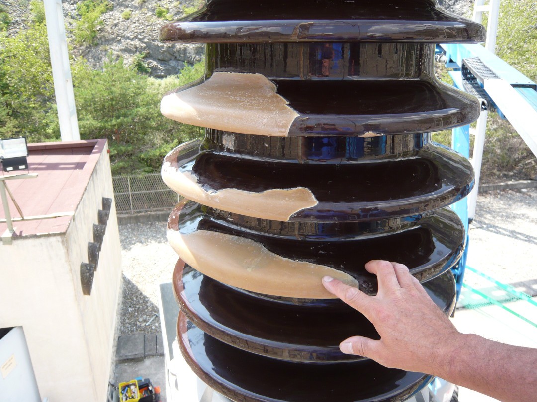 • Problème  : La porcelaine est brisée à plusieurs endroits à la suite de l’explosion d’un disjoncteur. La ligne de fuite de l’appareil et donc sa résistance électrique, est endommagée. De plus, le gel peut entrainer des dégâts structurels ultérieurs.