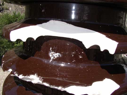 • Mode opératoire : Après une préparation adéquate des surfaces concernées, une empreinte par moulage des parties saines est effectuée avec l’élastomère BELZONA 2211 MP Hi-Build Elastomer. Ensuite, la reconstruction du profil de l’isolateur est faite à l’aide du BELZONA 8111 Mouldable Wood en suivant le moule préalablement fait. BELZONA 8111 Mouldable Wood offre des propriétés de résistance électrique excellentes (>2.1×104 Ohm.cm3) particulièrement adaptées pour ce type de réparation.